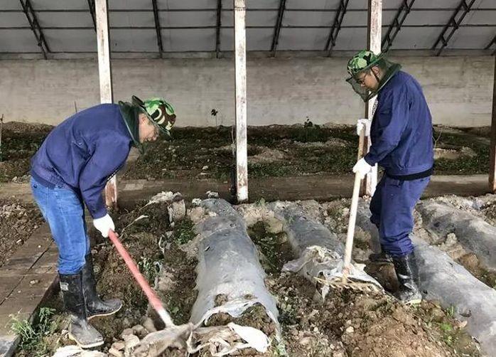 所以夏天进大棚,就要准备好冲锋衣、防蚊面具和手套。“即使这样,一趟回来被叮一二十个包也是很正常的。”杨启军说,“夏季大棚里的温度很高,反正场站里都是男同事,实在受不了了,就干脆光着膀子干,叮就叮吧。”