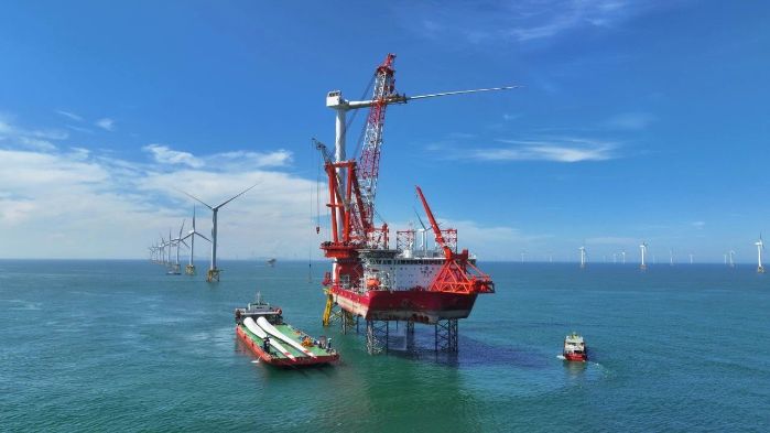 ▲全球首台16兆瓦超大容量海上风机吊装现场? 三峡传媒供图