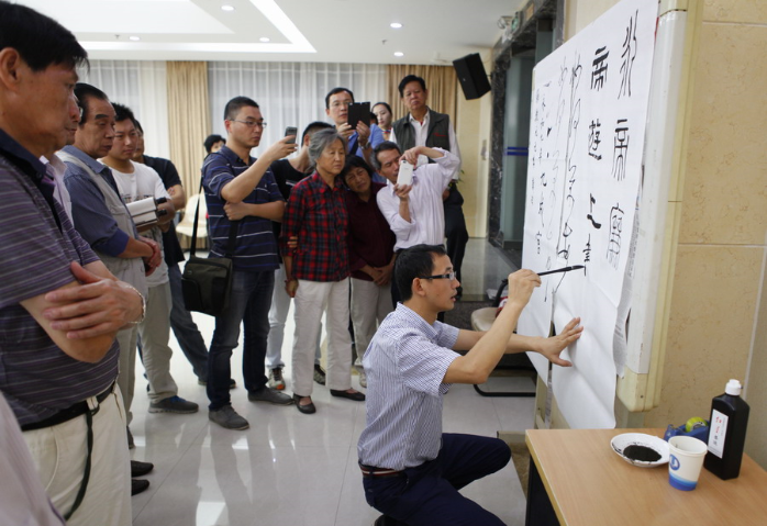 本网讯 (丁川华),一年好景君须记,最是橙黄橘绿时。在中秋国庆佳节到来之际,9月21日晚上,三峡集团书法 美术协会以书法为媒,举办2015年“迎中秋 庆国庆”书法讲座暨现 场笔会。
