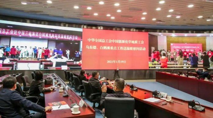 本网讯(韦敏)1月19日,中华全国总工会中国能源化学地质工会赴三峡集团,对国家重点工程——金沙江乌东德工程、白鹤滩工程的建设者进行慰问。中国能源化学地质工会主席张波,三峡集团党组书记、董事长雷鸣山出席活动并讲话。三峡集团党组成员、副总经理范夏夏参加活动。